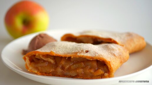 Простой рецепт штруделя с яблоками из вкусного творожного теста