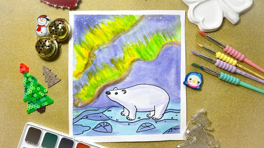 Как нарисовать мишку // как нарисовать северное сияние