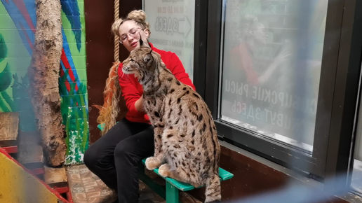 Сибирская рысь в мини-зоопарке в Новогодние каникулы.