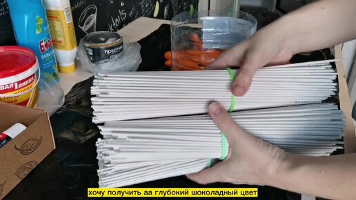 Окрашиваем бумажную лозу в шоколадный цвет и обрабатываем составом - лак/вода.