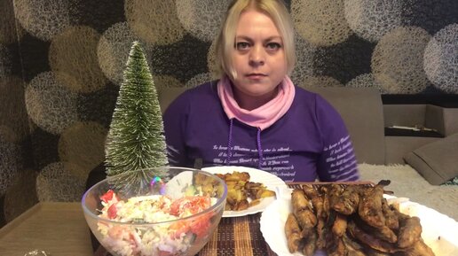 мукбанг жареная мойва, салат и картошка