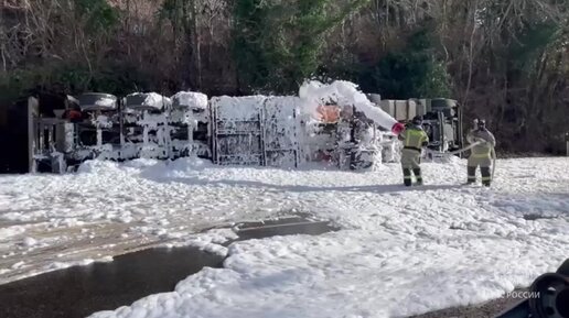 На трассе Джубга - Сочи ограничили движение после опрокидывания грузовика