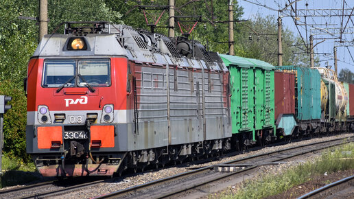 Тяжёлый электровоз 3ЭС4К-018 идёт на Петербург