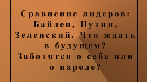 Сравнение лидеров: Байден, Путин, Зеленский. Что ждать в будущем? Заботятся о себе или о народе?