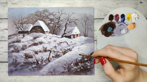 Как нарисовать заснеженную деревню с помощью 5 цветов❄️🛖🎨 Пошаговое видео🎥