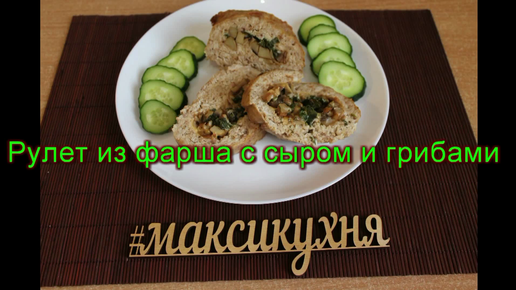 Рулет из фарша с сыром и грибами.