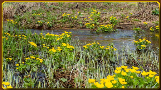 Лесная речка весной, калужница, живое пение птиц - релакс.