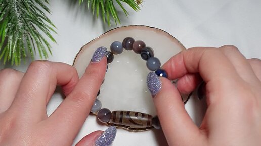 Браслет из натуральных камней с бусиной Дзи 2 глаза на поиск второй половинки.