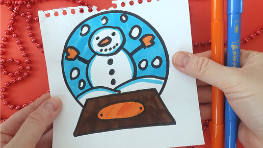 Как нарисовать снеговика в снежном шаре. Новогодние рисунки для детей на канале Фломик.