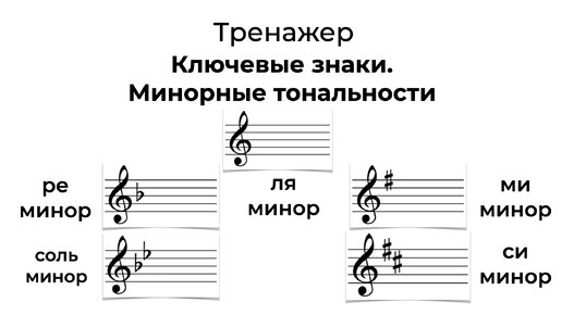 2 знака при ключе. Минорные тональности. Тренажер Ключевые знаки