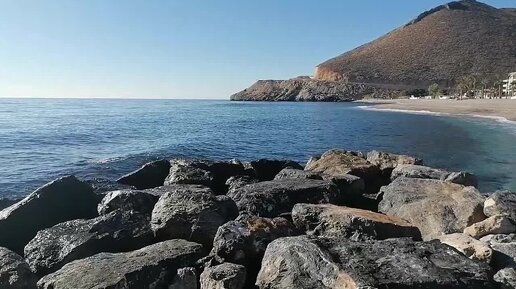 МОРЕ В ИСПАНИИ!Прогулка по берегу моря,Туристы и в январе загарают!