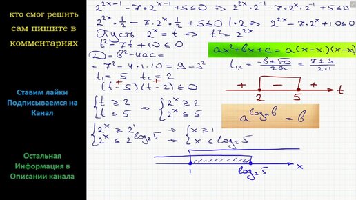 Математика Решите неравенство: 2^(2x-1) -7٠2^(x-1) +5 ≤ 0
