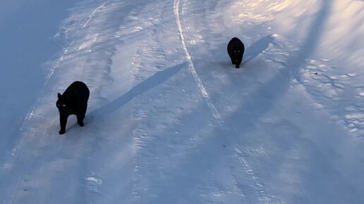 Очень длинная прогулка с моими Чернышами по белоснежной дороге в нашем посёлке. Мы это любим и иногда с удовольствием гуляем.