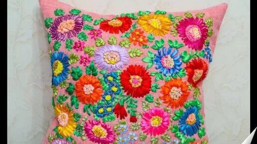 Декоративные подушки с вышивкой из лент.