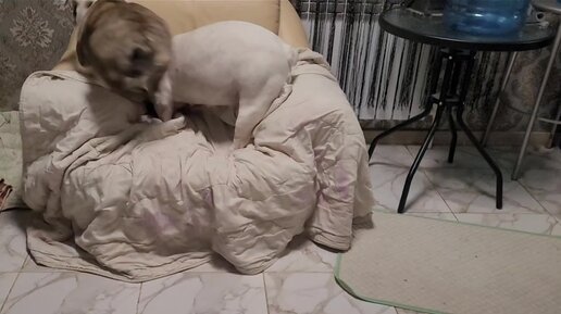 Первый день передержки щенка у нас, ничего не боится девочка🙂