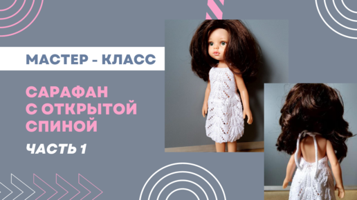 ПОДРОБНЫЙ МАСТЕР - КЛАСС по вязанию сарафана с открытой спиной для куклы (с 1 по 24 ряд). Ссылка на текстовое описание под видео