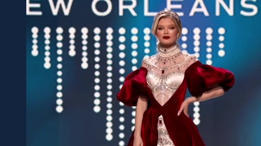Выход россиянки Анны Линниковой на конкурсе «Мисс Вселенная» в платье «Корона Российской империи», созданного с участием Эрмитажа