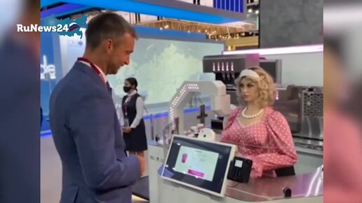 Дуняша на ПМЭФ-2022 предложила кофе прототипу человекоподобного робота Алекса | Promobot