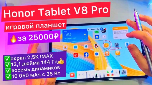 Планшет Honor Tablet V8 Pro: экран 2,5K IMAX 12,1 дюйма 144 Гц, восемь динамиков, 10 050 мАч с 35 Вт