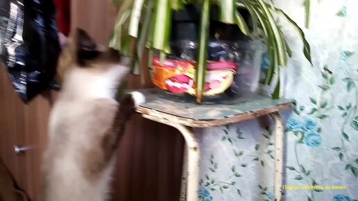 Котёнок на здоровом питание ест цветок, одни витомины.