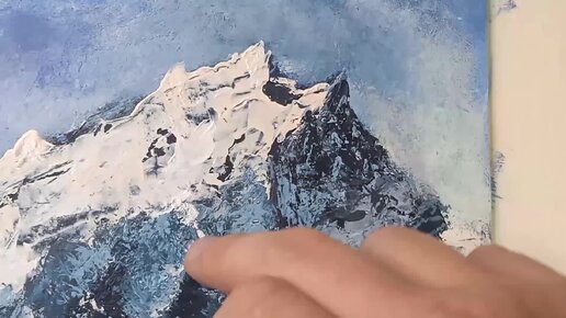 Как нарисовать горы и лес. Облака и снег. Акриловая живопись. Пейзаж