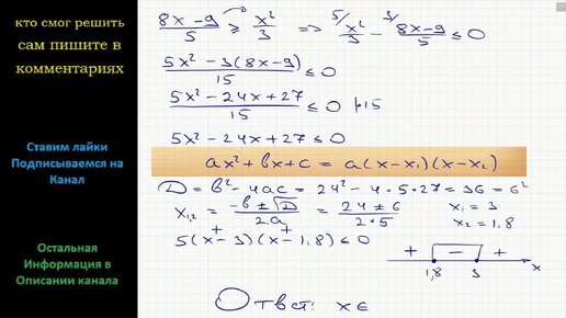Математика Решите неравенство (8x-9)/5 ≥ x^2/3