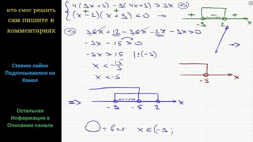 Математика Решите систему неравенств 4(9x+3)-9(4x+3)>3x (x-2)(x+9)<0