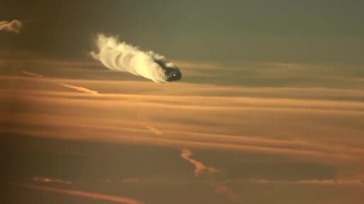 Закат, Boeing 787 и шикарный конденсационный след в небе След появляется при низкой температуре и высокой влажности — и представляет собой