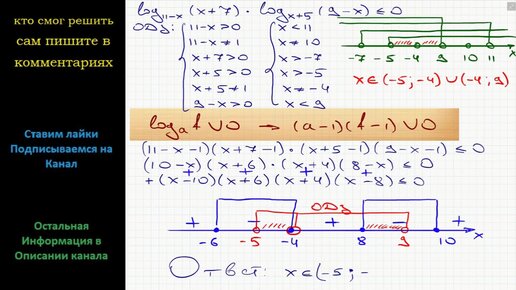 Математика Решите неравенство: log(11-x) (x+7) log(x+5) (9-x) ≤0