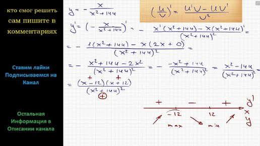 Математика Найдите точку максимума функции y= -x/(x^2-144)