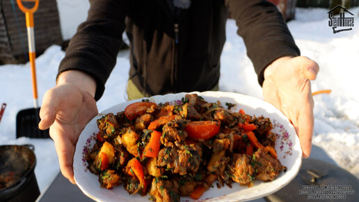 Оджахури в казане на огне - Картошка с мясом - Показываю рецепт