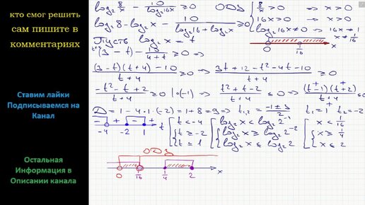 Математика Решите неравенство log2 8/x - 10/(log2 16x) ≥0
