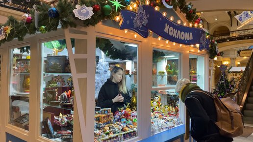 Новогодние игрушки Хохлома в ГУМе. Цены на игрушки.