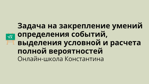 Задача на закрепление умений определения событий, выделения условной и расчета полной вероятностей