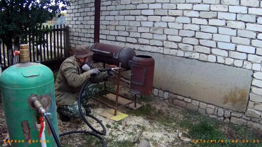 Самодельный пескоструй в деле. Пескоструйная обработка мангала коптильни