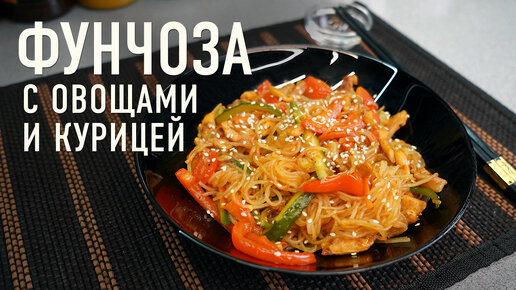 Фунчоза с курицей, овощами и соусом терияки