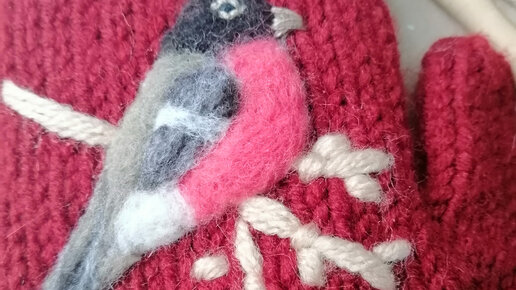Так давно хотела сделать варежки с войлочным снегирем. И вот первый готов. Подписывайтесь, чтобы не пропустить МК как связать такие варежки