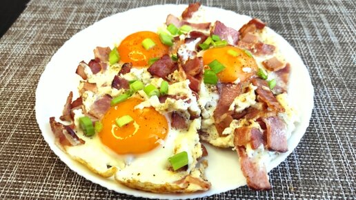 Яичница с беконом.Очень вкусный и быстрый завтрак понравится всей семье.