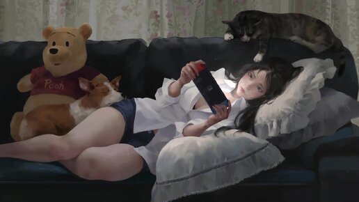 Очаровательная Аниме Девушка Рубится в Игрушки на Nintendo Switch – Живые Видео Обои