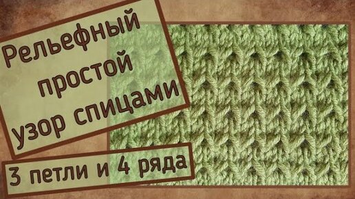 Рельефный объёмный простой узор спицами. Раппорт 3 петли и 4 ряда.