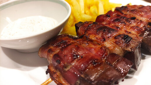 Шашлык из бараньей печени в беконе