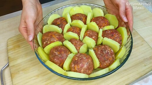 Просто кладу картофель между фаршем и готовлю в духовке 25 минут (ну очень интересный рецепт)