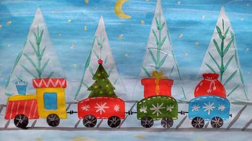 Поезд Деда Мороза 🧑🎄 Рисуем с детьми гуашью 🎨