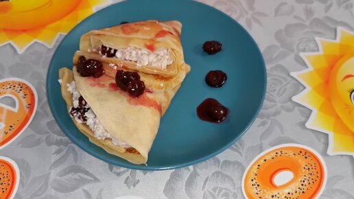 Сладкие десертные БЛИНЧИКИ с творогом и ВИШНЕВЫМ вареньем.