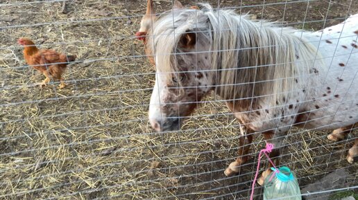 Минихорс охраняет курочек🐔