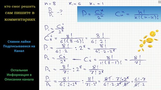 Математика Монету бросают 8 раз Во сколько раз событие орел выпадет ровно шесть раз более вероятно чем событие орел выпадает ровно один раз