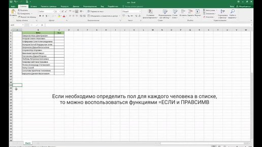 Как в Excel определить пол по отчеству?