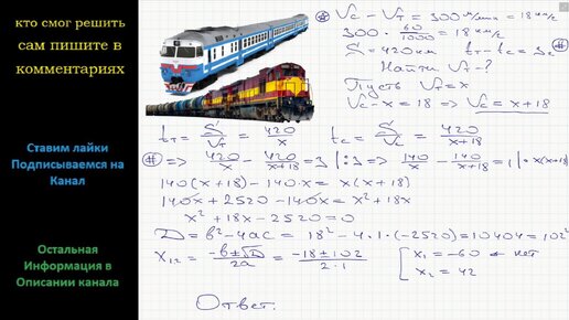 Математика Товарный поезд каждую минуту проезжает на 300 метров меньше, чем скорый, и на путь в 420 км тратит времени на 3 часа больше
