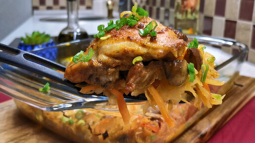 Все как мы любим - курочка, грибы, капуста и готовить проще простого (все сложили и в духовку)