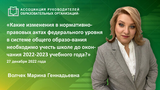 Какие изменения в НПА федерального уровня в системе ОО необходимо учесть школе до окончания 2022-2023 учебного года? Волчек М.Г.
